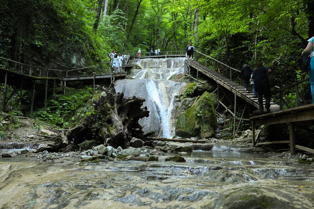 33 водопада расположены в долине реки Шахе, которая уходит в горы от посёлка Головинка. По пути на маршрут экскурсовод расскажет об истории освоения Черноморского побережья. Цель путешествия находится в Лазаревском районе, поэтому будем проезжать поселки Дагомыс, Уч-Дере, Вардане, Лоо. Будет остановка на пасеке, где вы сможете продегустировать уникальный кавказский мёд, прослушать интересную информацию о продукции пчеловодства, затем последует остановка в ауле Кичмай, где будет устроена дегустация вин и сыра. Расскажут и покажут секреты их изготовления.